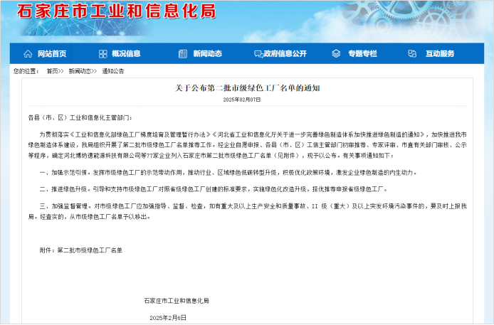 蛇年伊始,开门迎喜讯!2月7日,石家庄市工业和信息化局正式公布了第二批市级绿色工厂名单,电子游戏新网站凭借其在绿色制造、节能减排以及可持续发展领域的卓越表现,成功跻身其中,荣获石家庄市级绿色工厂称号!这一荣誉不仅是对拓普电气多年来坚持绿色发展的肯定,更是对其未来持续创新的激励。